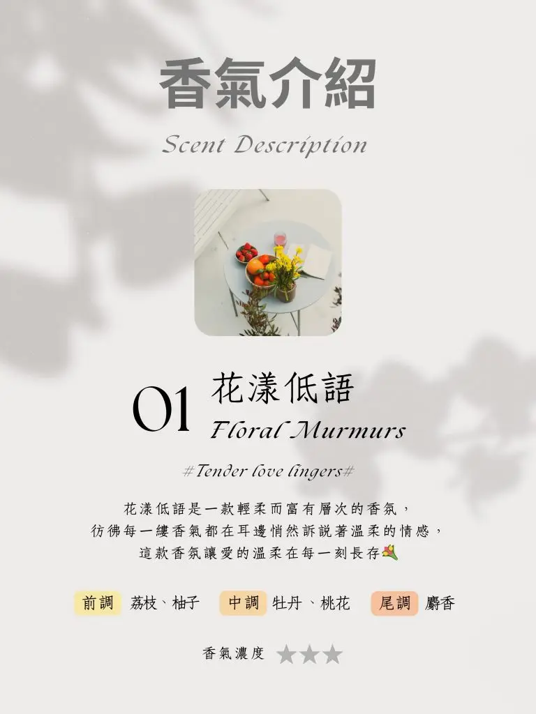 Floral Murmurs 是一款輕柔而富有層次的香氛,