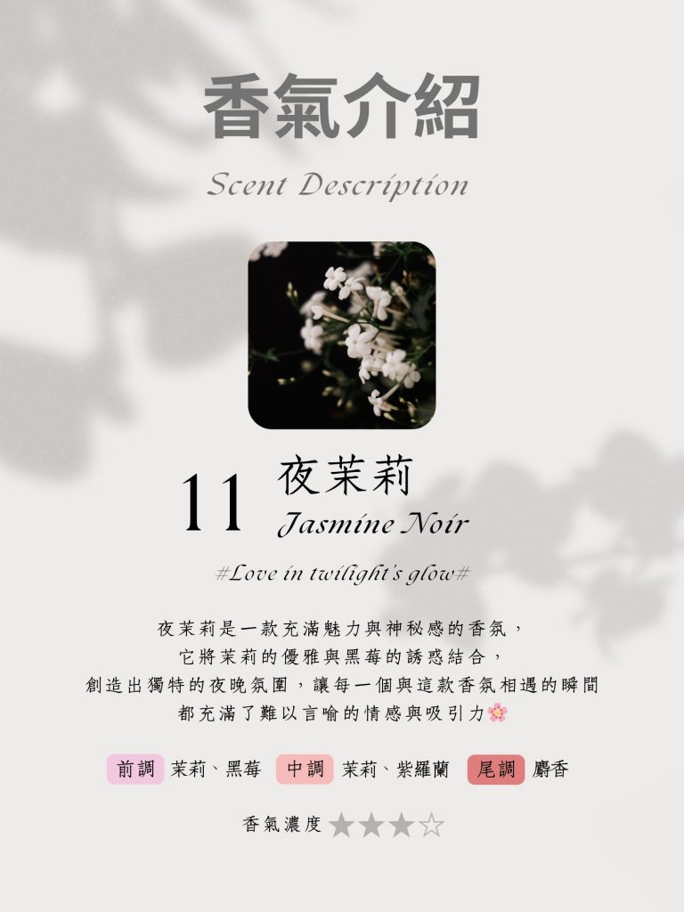 Jasmine Noir 是一款充滿魅力與神秘感的香氛,
