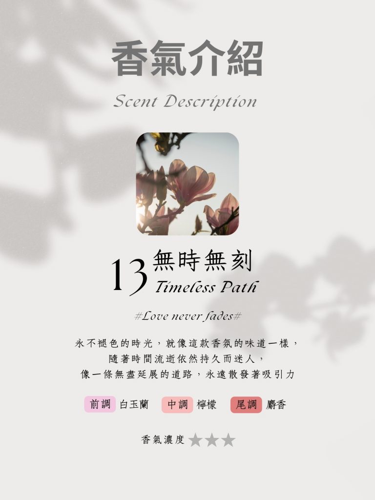 整個香氛散發著一種永恆不變的陪伴感代表著永不褪色的時光,