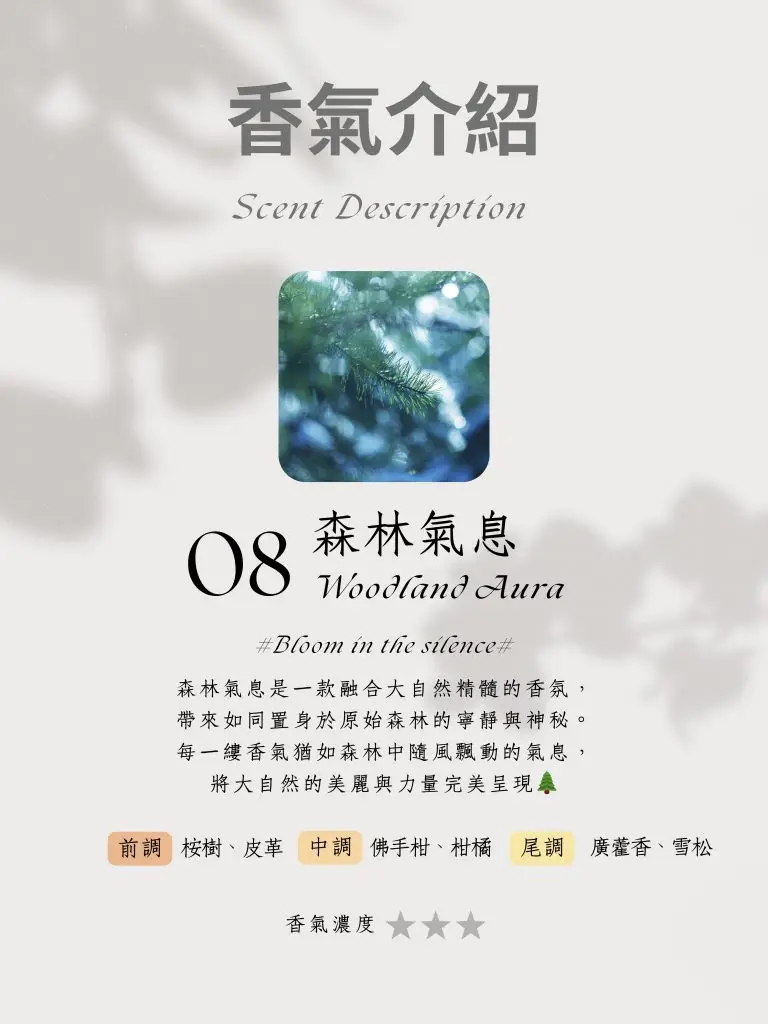 每一縷香氣猶如森林中隨風飄動的氣息,